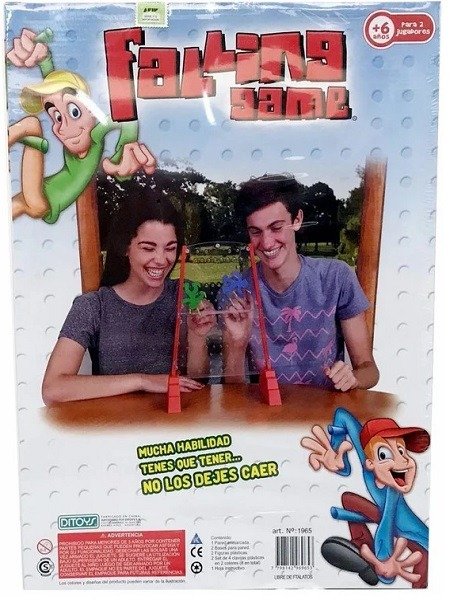 "Falling Game" es un juego de mesa que invita a los niños a desarrollar la motricidad fina y la rapidez de reacción. En él deberán llevar a los personajes desde arriba hacia abajo de una pared. Usa toda tu habilidad y no los dejes caer.